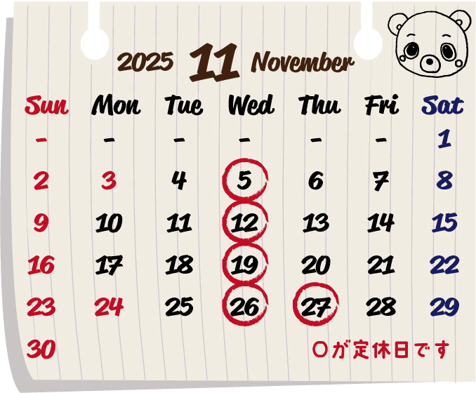 11/27(木)展示会関係のため臨時休業をさせて頂きます。申し訳ございません。